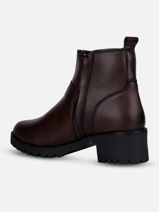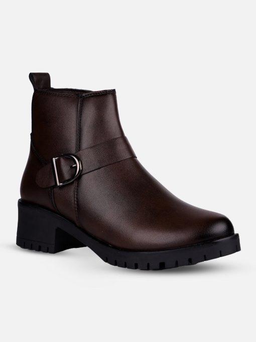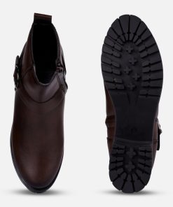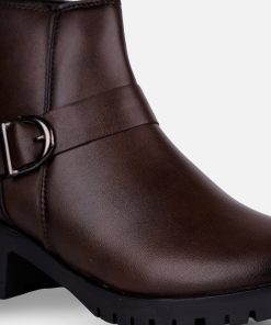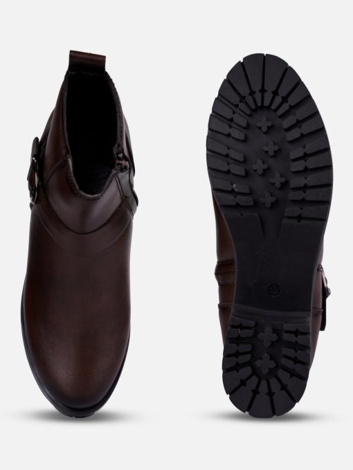 This elegant ladies’ ankle boot features a sleek brown upper exterior, designed for formal and casual occasions both. The stylish side buckle strap adds a touch of sophistication, making it a versatile choice for both casual and dressy outfits. With its comfortable fit and contemporary design, this boot is perfect for the modern woman seeking both fashion and functionality.